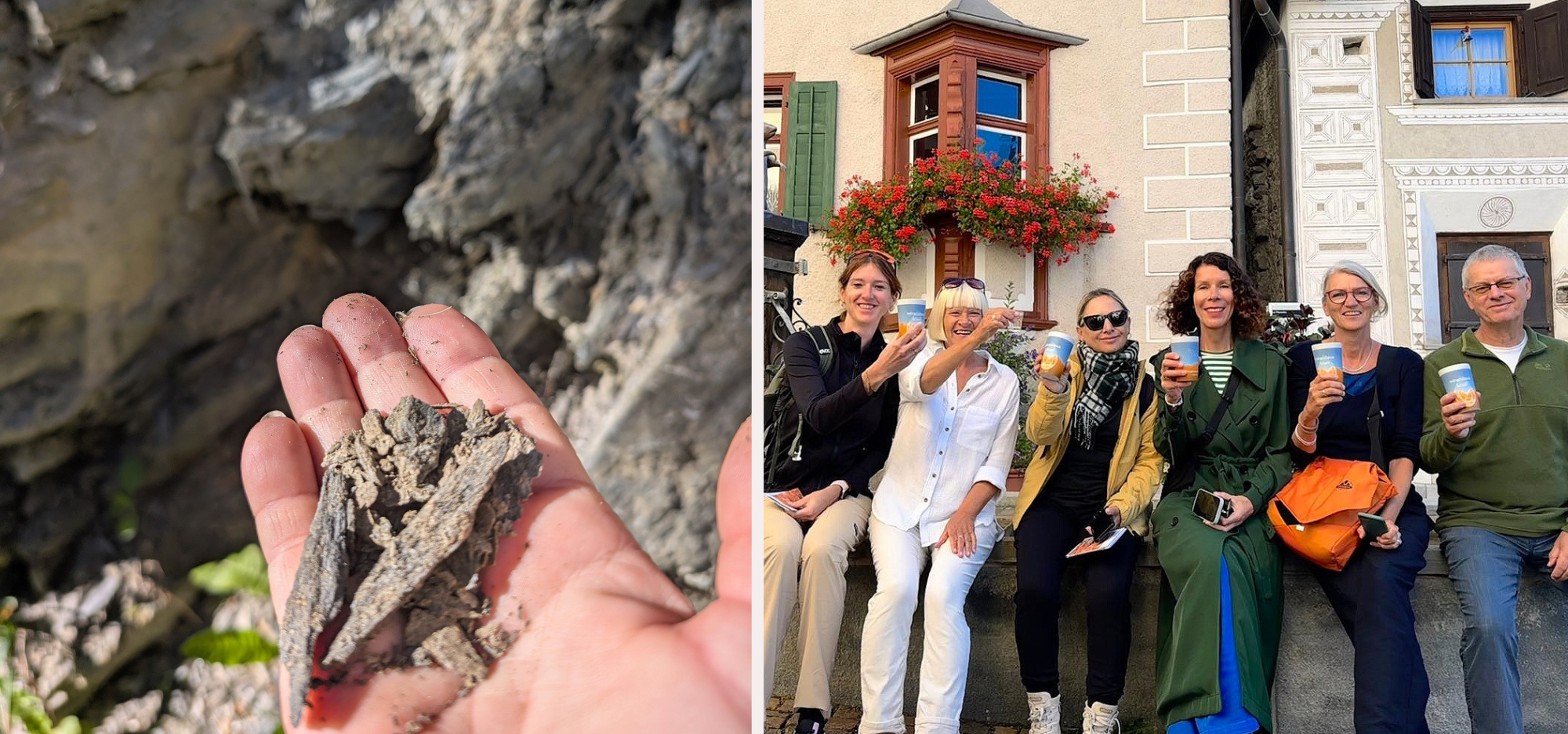 Dem Bündner Schiefer sei übrigens zu verdanken, dass das Wasser so reich an Mineralien ist, fügt sie hinzu. Recherchen bestätigen: Dieser besondere Schiefer prägt große Teile des Untergrunds im Unterengadin. Seine dichten, gefalteten Gesteinsschichten wirken dabei wie ein natürlicher Filter, durch den das Wasser langsam hindurchsickert. In Kombination mit den tief liegenden Druck- und Temperaturschichten entsteht so mineralreiches, teils warmes Wasser, das schließlich als Thermalquelle an die Oberfläche tritt.