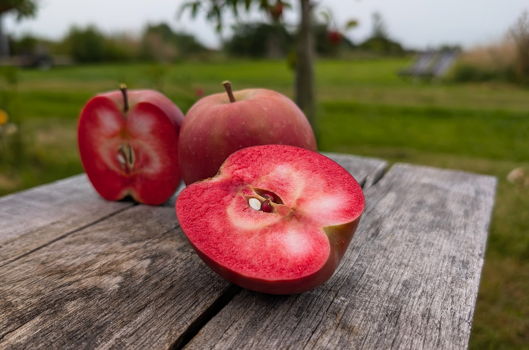 Foto (spreeblogger): Der Weirouge Apfel von The Jork – er ist nicht nur optisch durch sein tiefrotes Fruchtfleisch ein Highlight, sondern bietet auch gesundheitliche Vorteile.