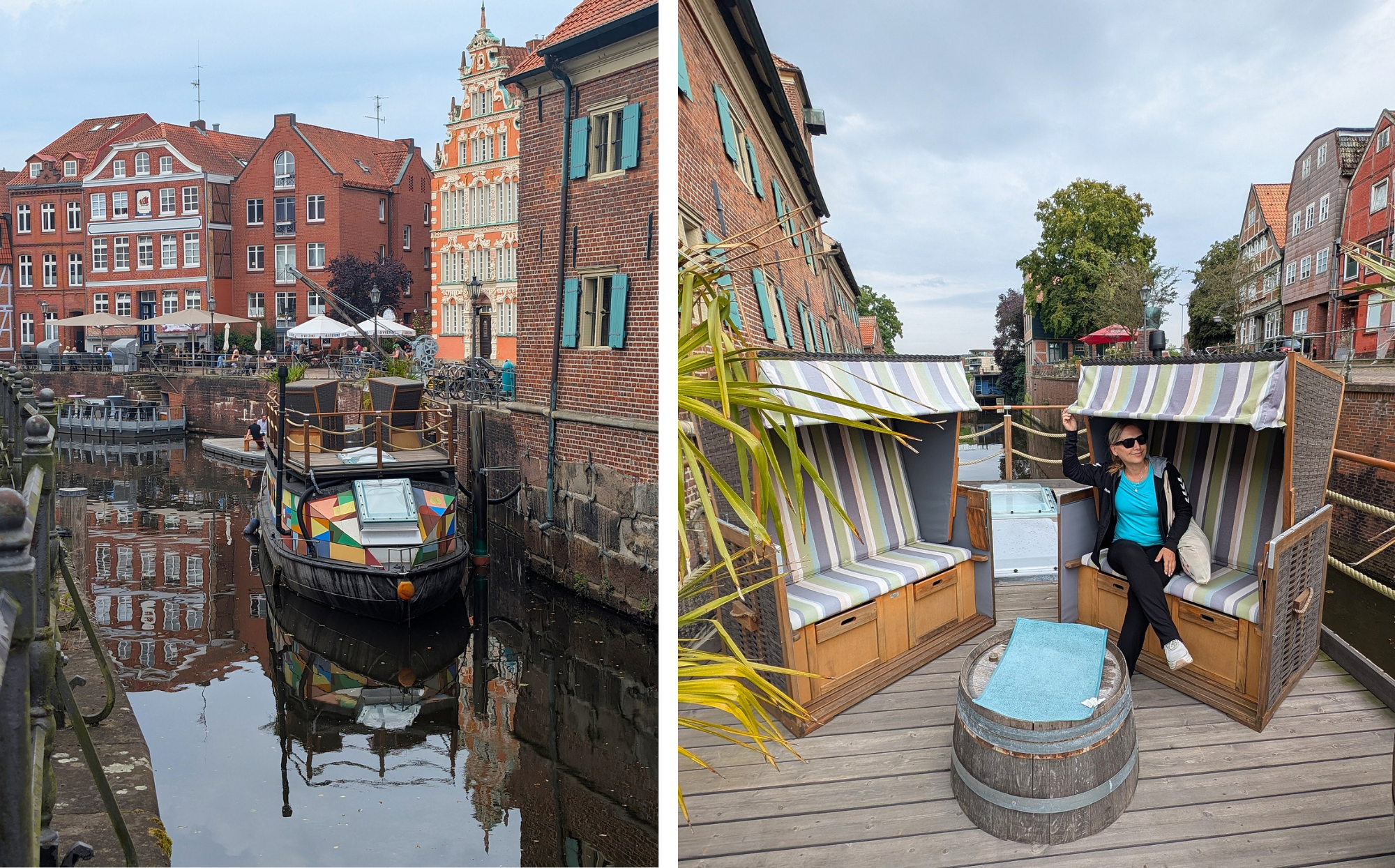 Bevor wir kräftig in die Pedalen treten, wartet ein Spaziergang durch die Hansestadt Stade auf uns. Allen voran die Stadtführerin Dagmar. Sie zeigt uns die schönsten Sehenswürdigkeiten der Hansestadt und hat so manch erfrischende Geschichte auf „Plattdüütsch“ parat. Was ich bisher noch nicht wusste? Stade ist die Stadt der Häfen. Insgesamt gibt es 4 davon: den Holzhafen, den Stadthafen, den Werfthafen und den Altstadthafen. Direkt im historischen Stadtkern befindet sich der kleinste unter ihnen – der Altstadthafen. Er wird hauptsächlich für den Tourismus genutzt, insbesondere für Ausflüge und Fahrten auf der Elbe.