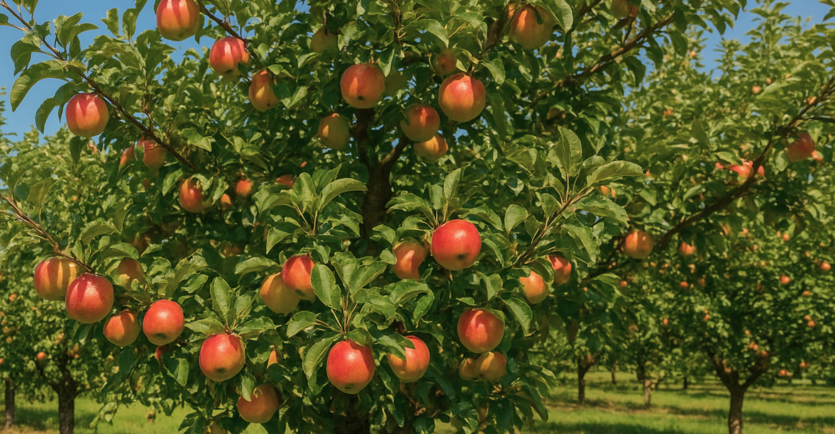 Eine Radtour durch ein Meer von Apfelbäumen.
